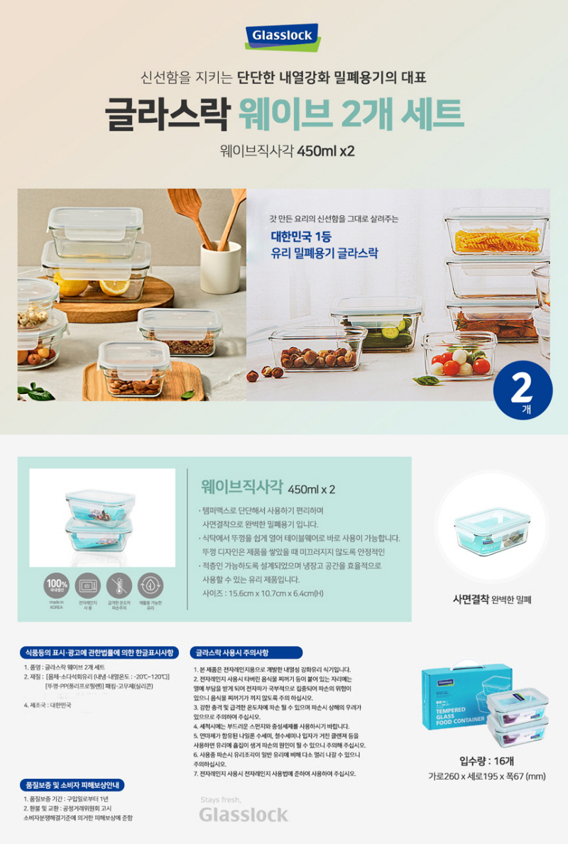 [±Û¶ó½º¶ô] À¯¸®¹ÐÆó¿ë±â Á÷»ç°¢ 3Á¶¼¼Æ® 2-1È£ (715ml x 3°³)
