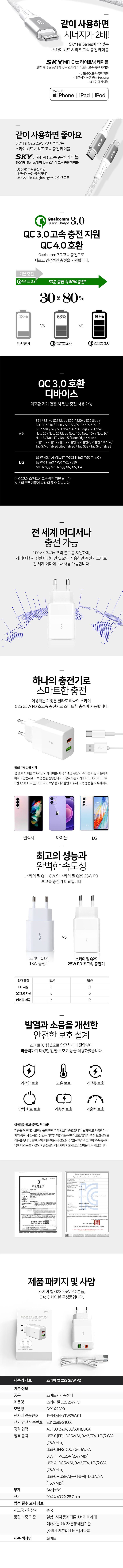 ½ºÄ«ÀÌ ÇÊ Q1X 25W PD Ãʰí¼Ó ÃæÀü ¾î´ðÅÍ+CtoC 1.5M ÄÉÀÌºí ¼¼Æ®