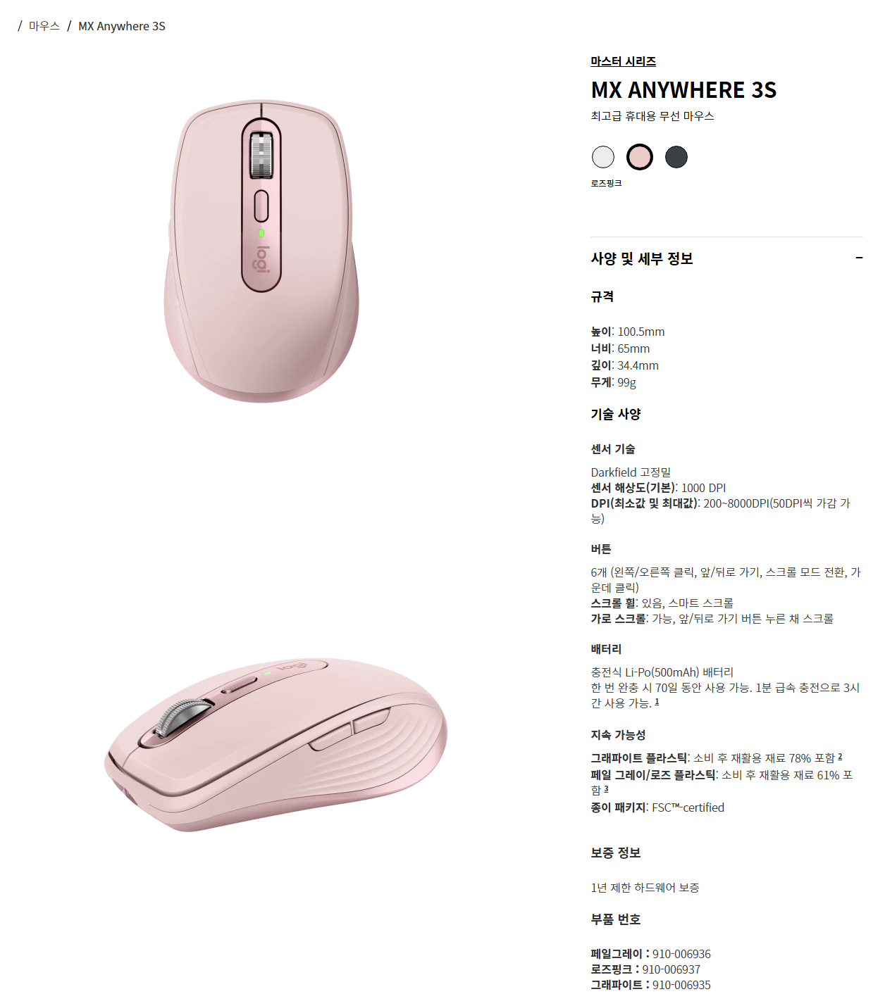 [·ÎÁöÅØ] ÄÚ¸®¾Æ Á¤Ç° ¹«¼± ¸¶¿ì½º (M170) 1P