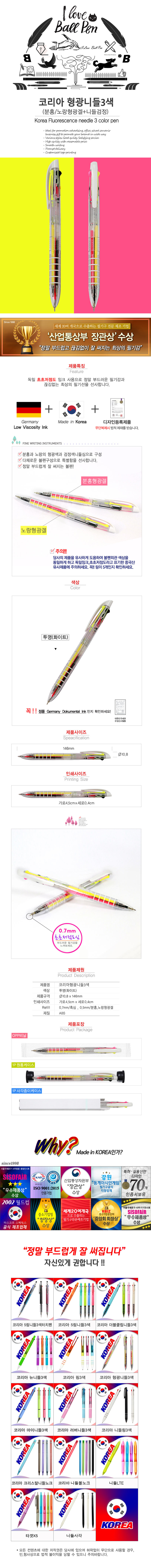 »óǰ¸í ±¹»ê ÄÚ¸®¾Æ Çü±¤ ´Ïµé 3»ö º¼Ææ (µ¶ÀÏÀ×Å© ÃÊÃÊÀúÁ¡µµ) 0.7mm 1P