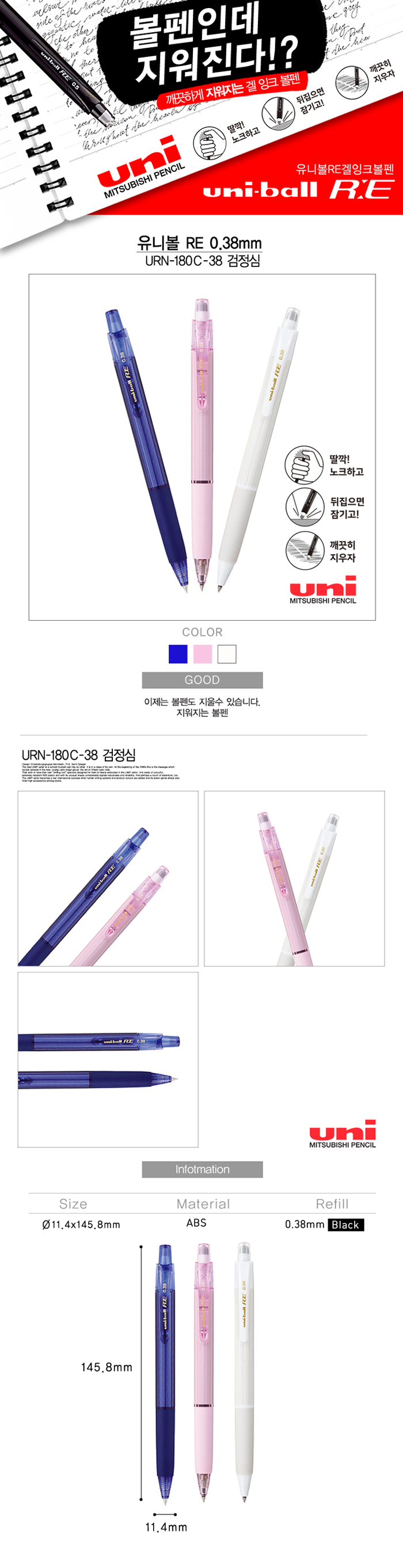 [À¯´Ï] uni Á¦Æ®½ºÆ®¸² 507 3»ö º¼Ææ 0.5mm 1P