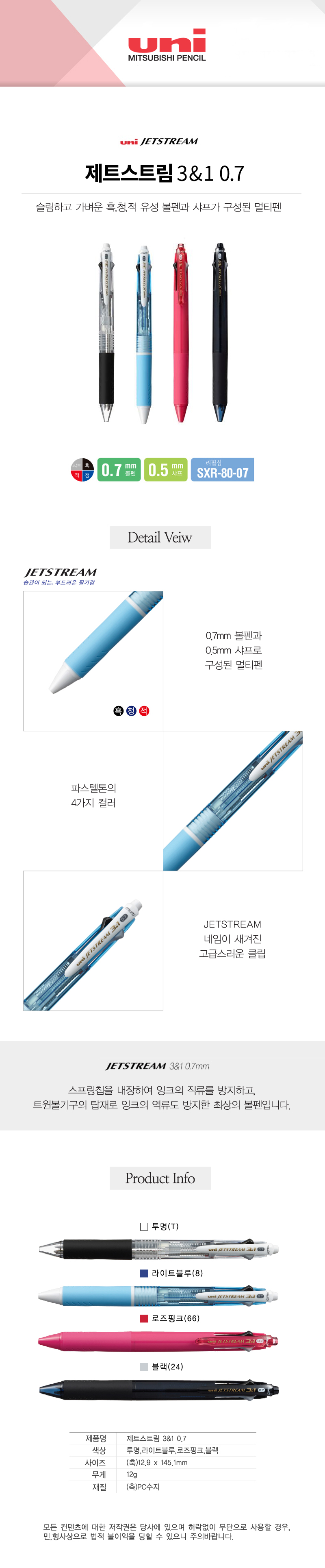 [À¯´Ï] uni Á¦Æ®½ºÆ®¸² 3&1Ææ(3in1) (º¼Ææ 0.7mm / »þÇÁ 0.5mm) 1P