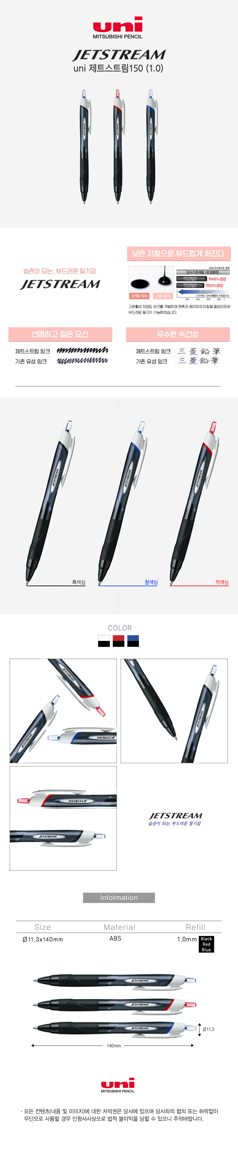 [À¯´Ï] uni Á¦Æ®½ºÆ®¸² 150Ææ Èæ»ö 0.7mm 1P