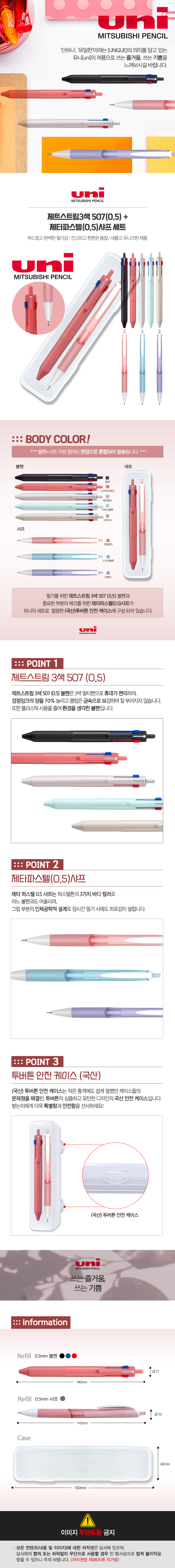 [À¯´Ï] uni Á¦Æ®½ºÆ®¸² 507 3»ö º¼Ææ 0.5mm 1P