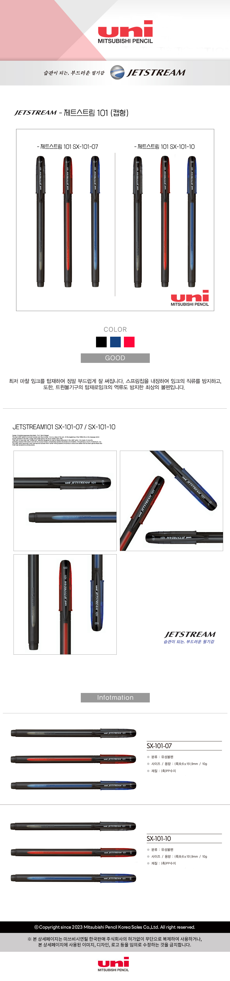 [À¯´Ï] uni Á¦Æ®½ºÆ®¸² 3»ö º¼Ææ 0.7mm 1P