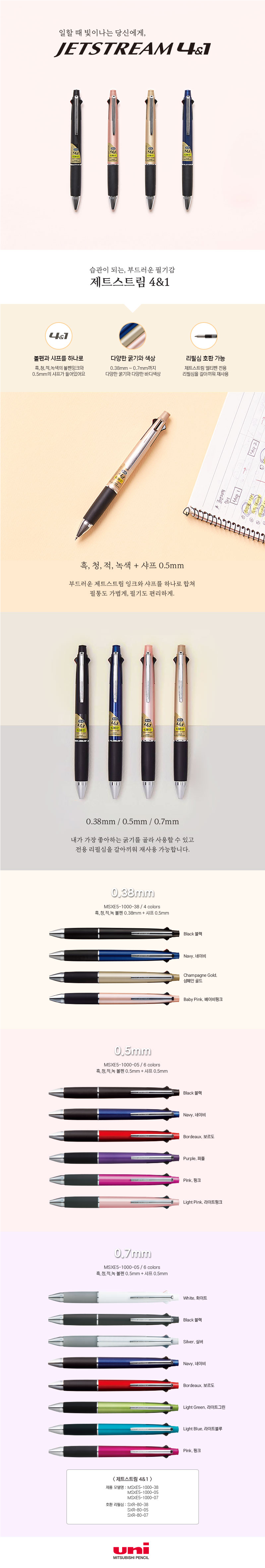 »óǰ¸í [À¯´Ï] uni Á¦Æ®½ºÆ®¸² 4»ö+1 ¸ÖÆ¼Ææ 0.38/0.5/0.7mm MSXE5-1000 1P