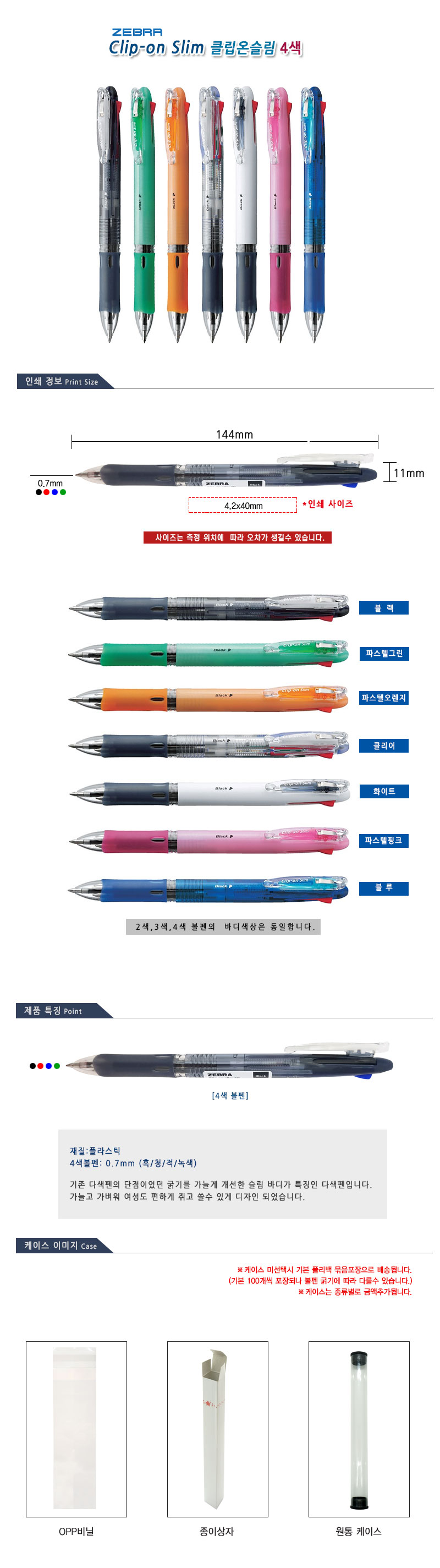 »óǰ¸í [Á¦ºê¶ó] Ŭ¸³¿Â ½½¸² 4»ö º¼Ææ 0.7mm 1P