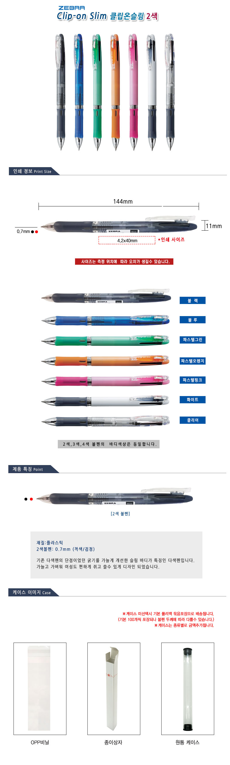»óǰ¸í [Á¦ºê¶ó] Ŭ¸³¿Â ½½¸² 2»ö º¼Ææ 0.7mm 1P