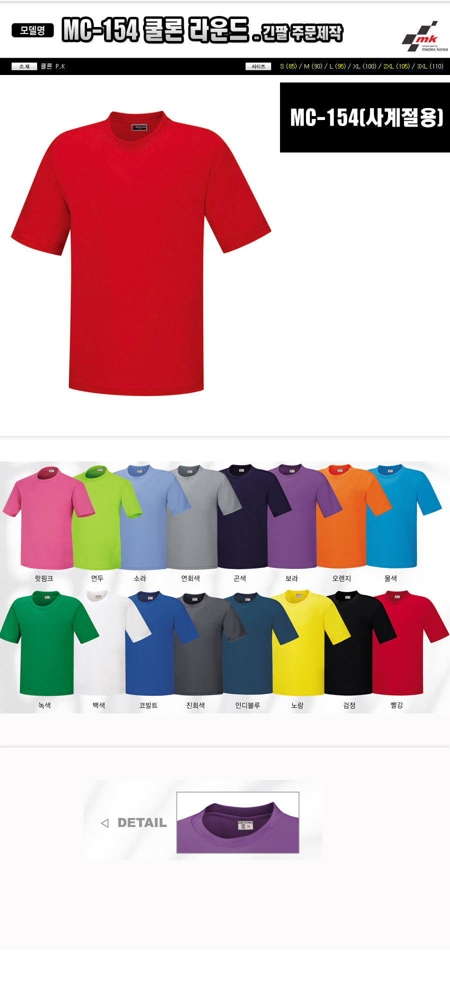 2026 F/W MC 341 °í±Þ ±â´É¼º Ä«¶ó T ¹ÝÆÈ 1P