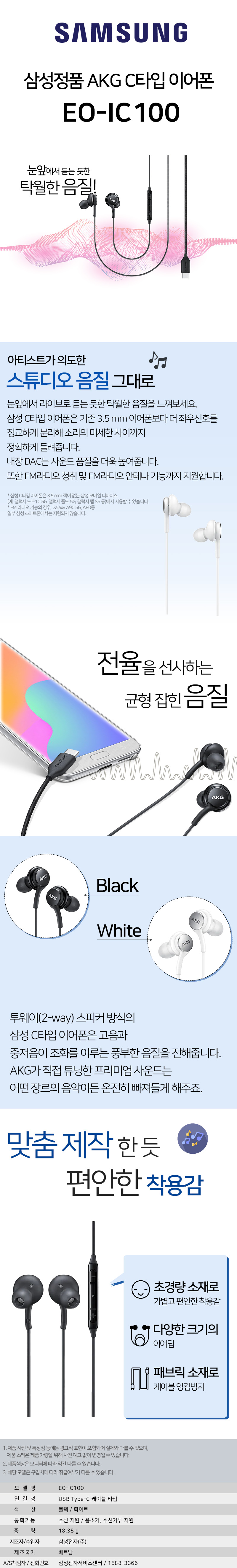 [»ï¼º] Á¤Ç° AKG CŸÀÔ À̾îÆù EO-IC100B 1P