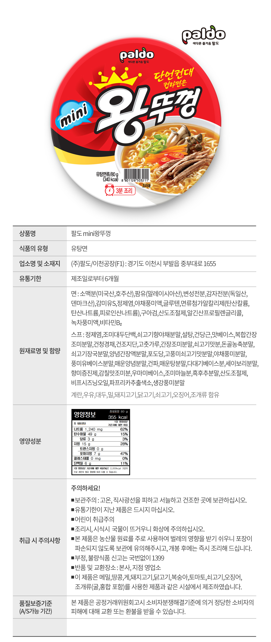 »óǰ¸í [ÆÈµµ] ¹Ì´Ï¿Õ¶Ñ²± 80g 6°³ÀÔ 1BOX