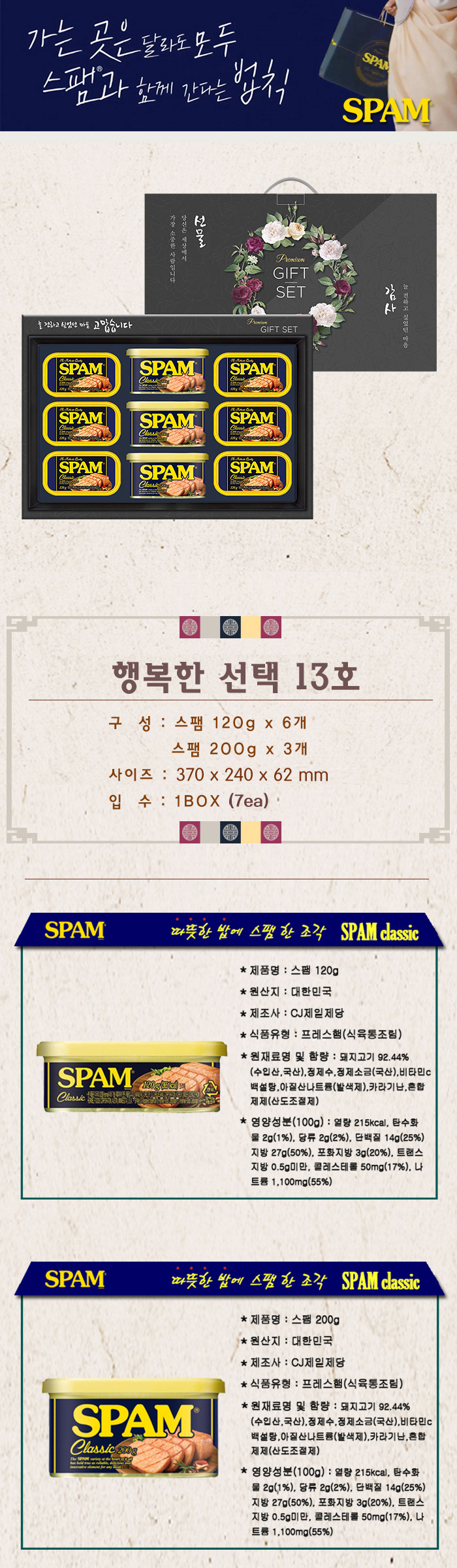 »óǰ¸í [CJ] ¹é¼³ ÇູÇÑ ¼±Åà 13È£ ¼¼Æ® (½ºÆÔ120g*6P+½ºÆÔ200g*3P)