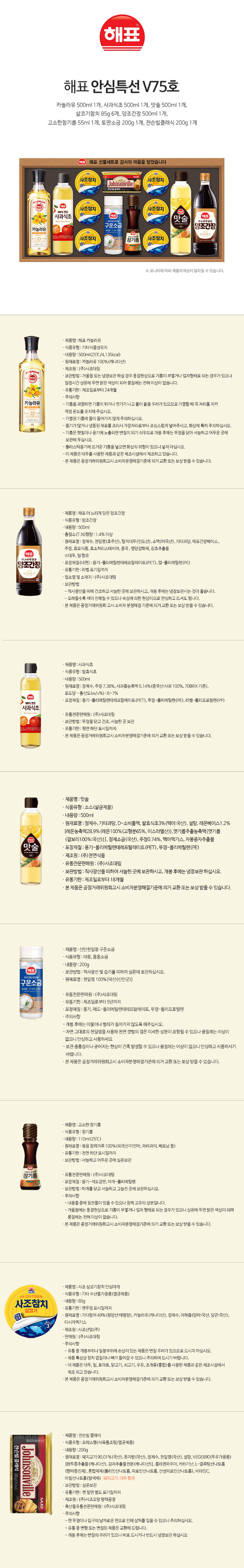 ±¸ ¼º Ä«³î¶óÀ¯500ml + »ç°ú½ÄÃÊ500ml + »ìÄÚ±âÂüÄ¡85g 6P + Àò½¼ºôŬ·¡½Ä200g + ÅäÆÇ¼Ò±Ý200g + °í¼ÒÇÑÂü±â¸§110ml + ¸À¼ú500ml + ¾çÁ¶°£Àå500ml