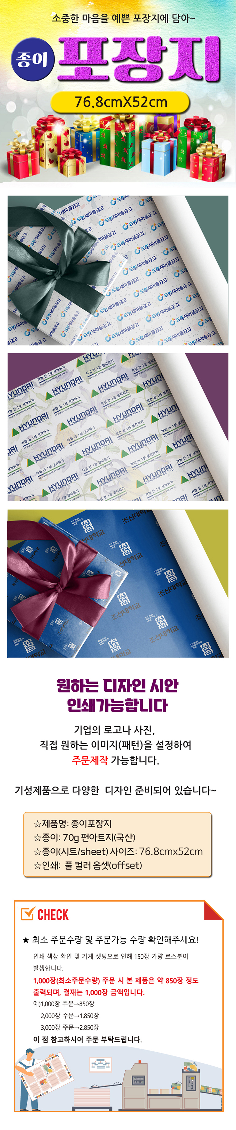 (ÁÖ¹®Á¦ÀÛ) Æ÷ÀåÁö 70g¾ÆÆ®Áö ±¹»ê Àü¸éÀμâ