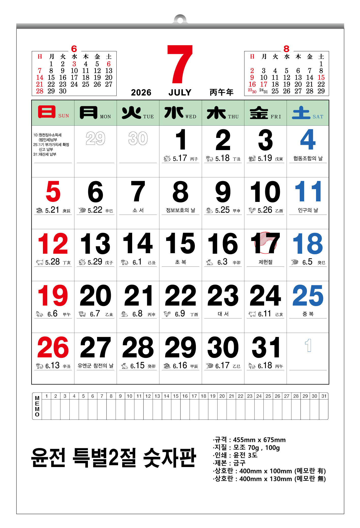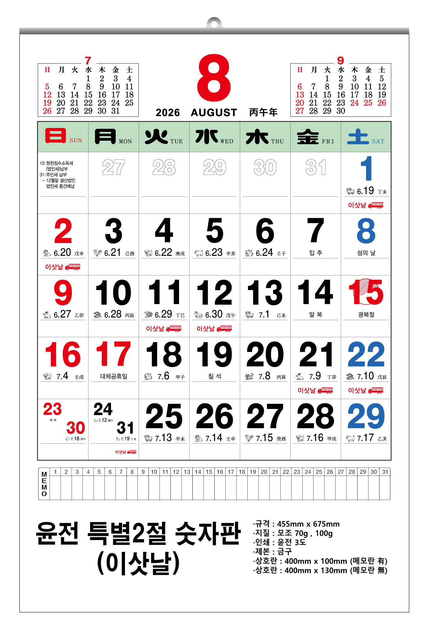 »óǰ¸í 2026³â À±Àü Ưº°2Àý ¼ýÀÚÆÇ ´Þ·Â 455x675mm (70g/100g) 1P