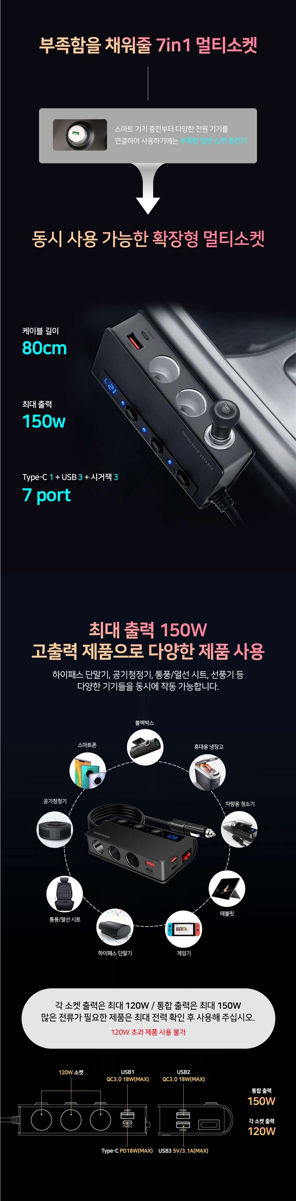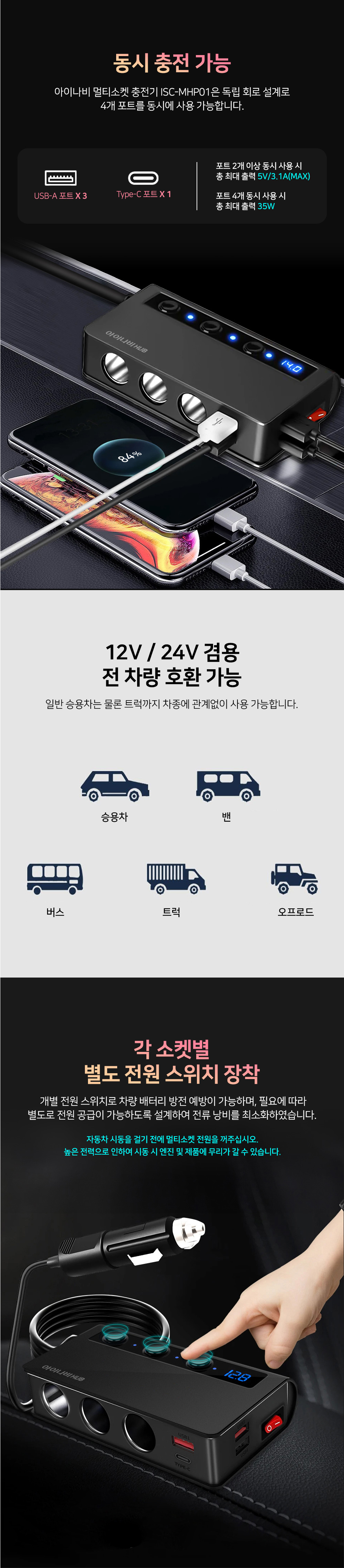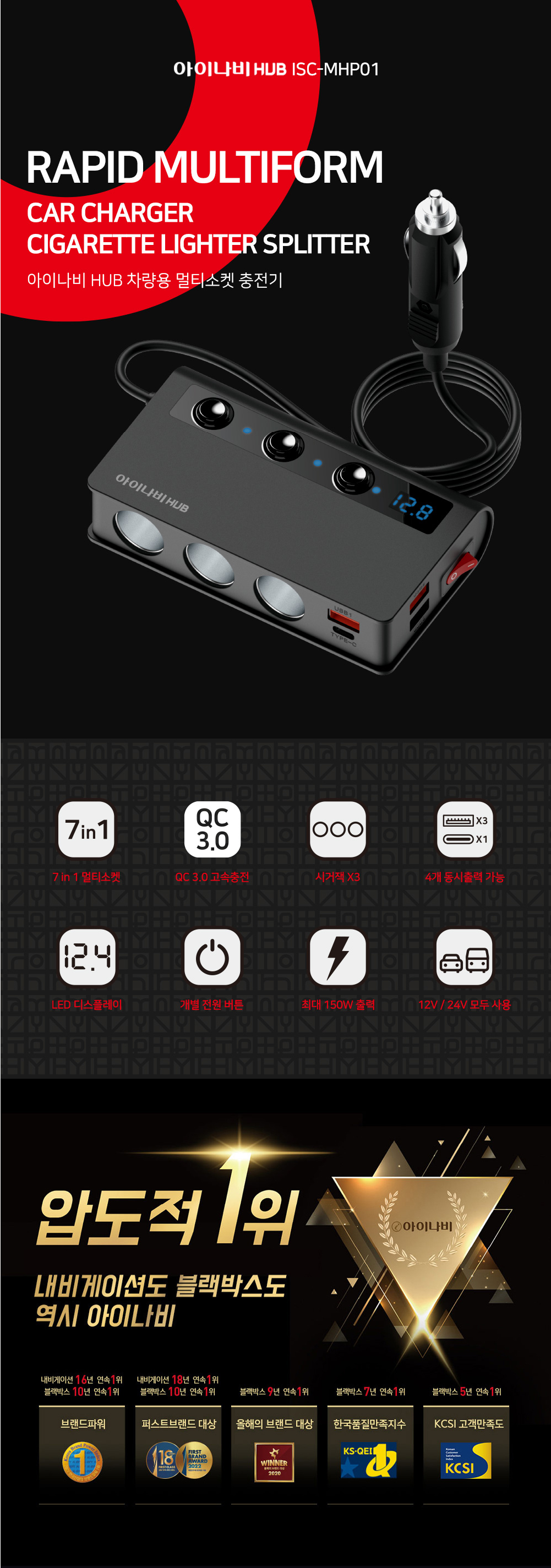 »óǰ¸í [¾ÆÀ̳ªºñ] Â÷·®¿ë 7 in 1 ¸ÖƼ¼ÒÄÏ ÃæÀü±âISC-MHP01 1P
