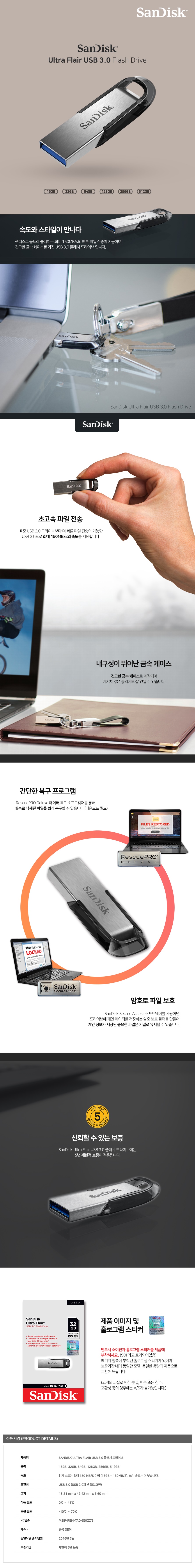 [»÷µð½ºÅ©] SDCZ73 ULTRA FLAIR USB¸Þ¸ð¸® 3.0 (16GB~512GB) 1P