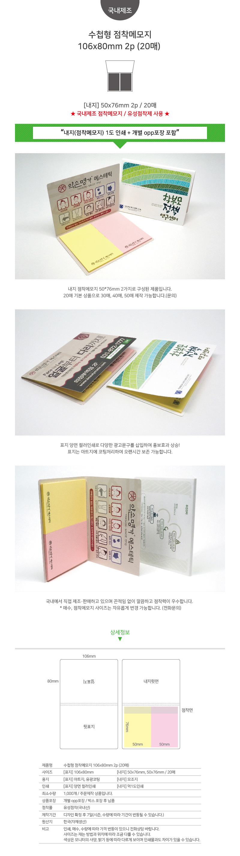 ¼öøÇü Á¡Âø¸Þ¸ðÁö 80*80mm 1P (20¸Å/30¸Å/50¸Å)