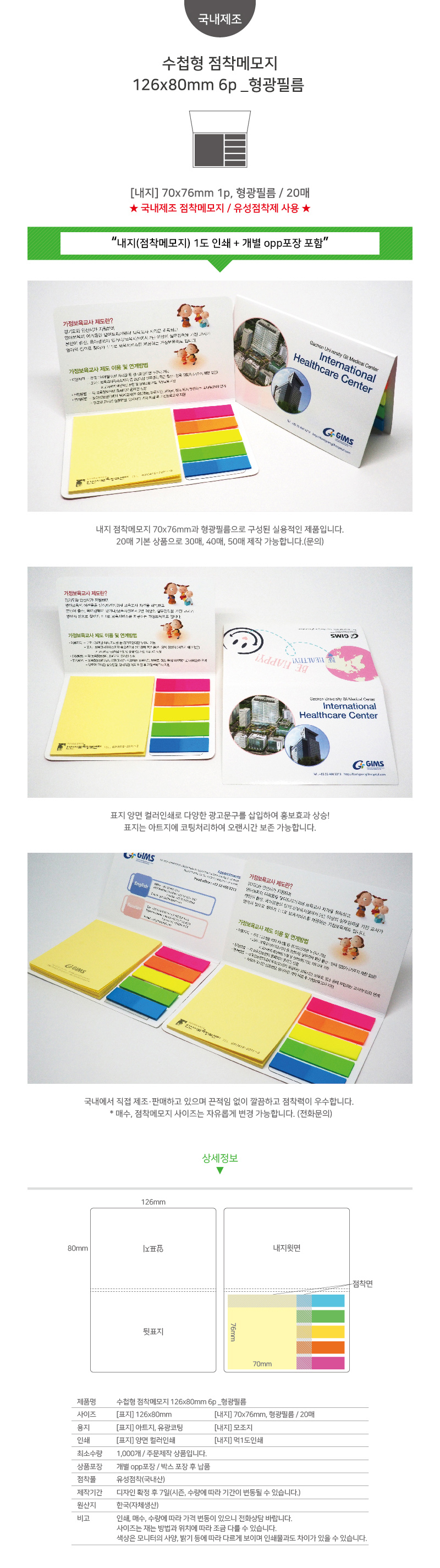 »óǰ¸í ¼öøÇü Á¡Âø¸Þ¸ðÁö 126x80mm 6P (Çü±¤Çʸ§) 20¸Å
