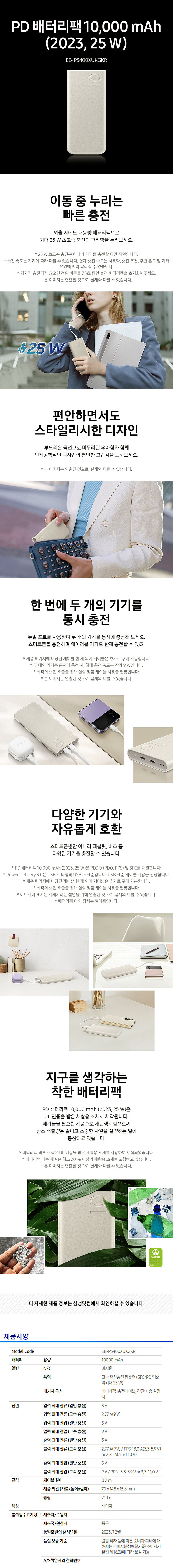 [»ï¼º] PD ¹èÅ͸®ÆÑ 10000mAh EB-P3400 º£ÀÌÁö 1P